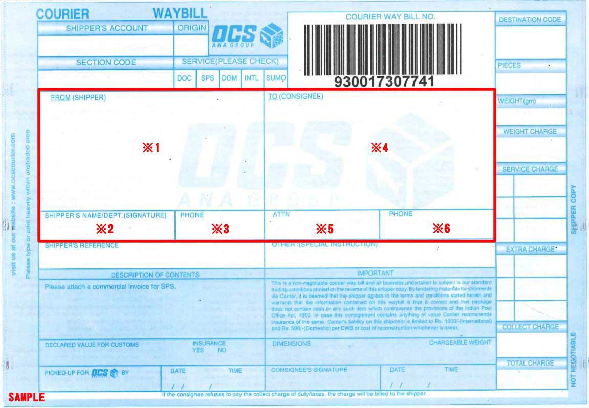 About entry of Air WaybillOCS Air Waybill is an imp ortant document for delivering your cargo safely and certainly. Please fill in necessary information correctly. Please keep the copy carefully. If you do not have Air Waybill, please type the same contents as the following and stick firmly on the cargo.